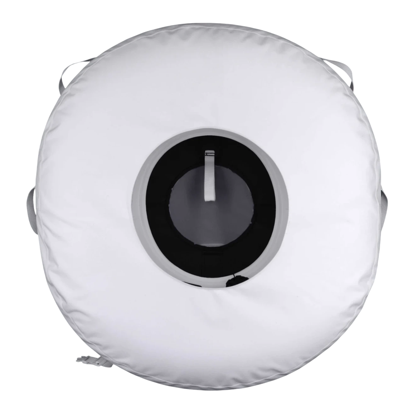 La vejiga interna se puede inflar fácilmente sin una bomba, y una válvula de vaciado permite que la boya se aplane completamente para facilitar su transporte y almacenamiento. Una solución robusta para escuelas de apnea, competiciones o uso intensivo.