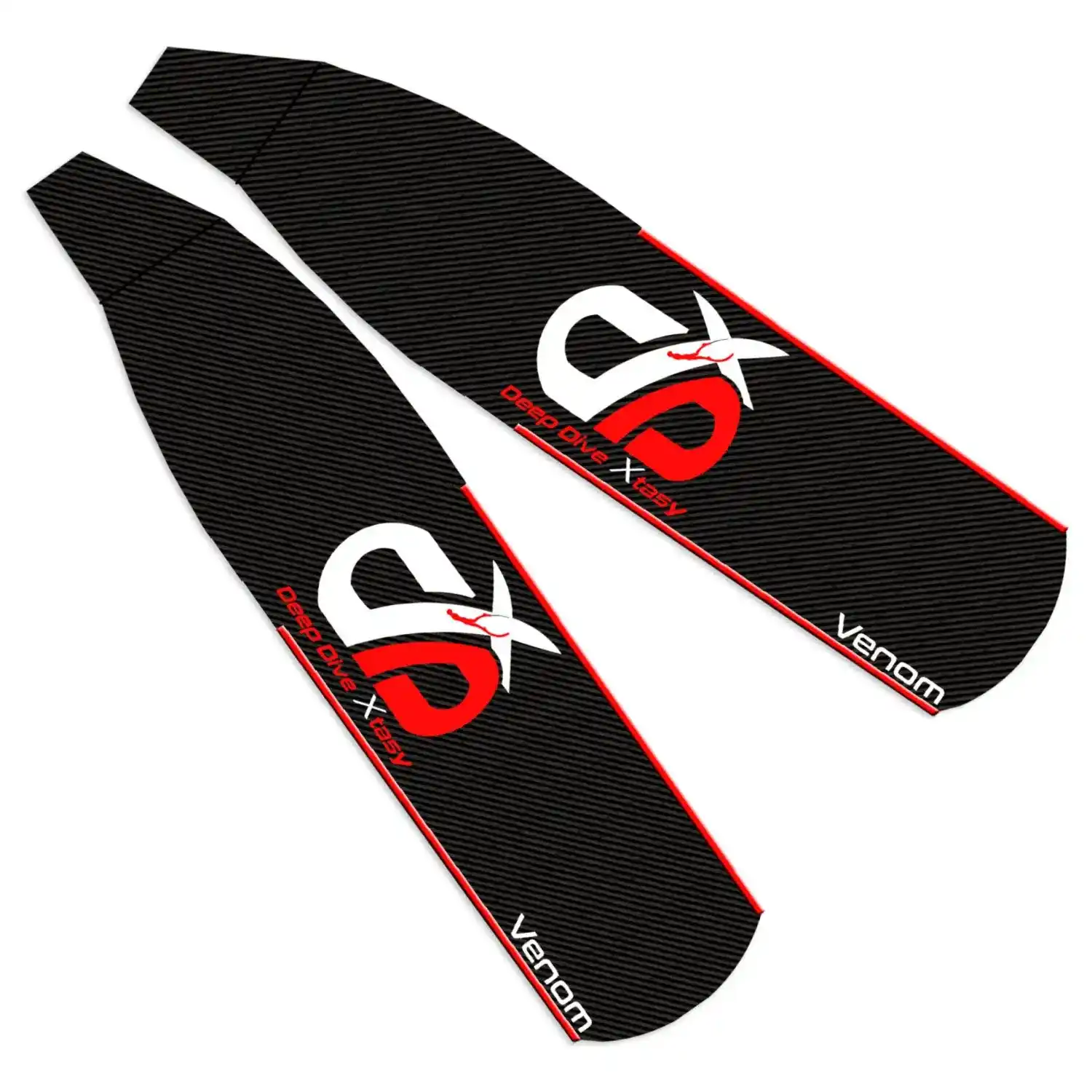 Las hojas Deep Dive Xtasy Venom están diseñadas para apneístas y pescadores submarinos que buscan alta eficiencia y precisión. Fabricadas con fibra de carbono 100% pura, estas hojas se producen utilizando el Proceso de Infusión al Vacío (VIP) para asegurar una distribución perfecta de la resina, una superficie impecable y máxima resistencia estructural sin burbujas ni puntos débiles.