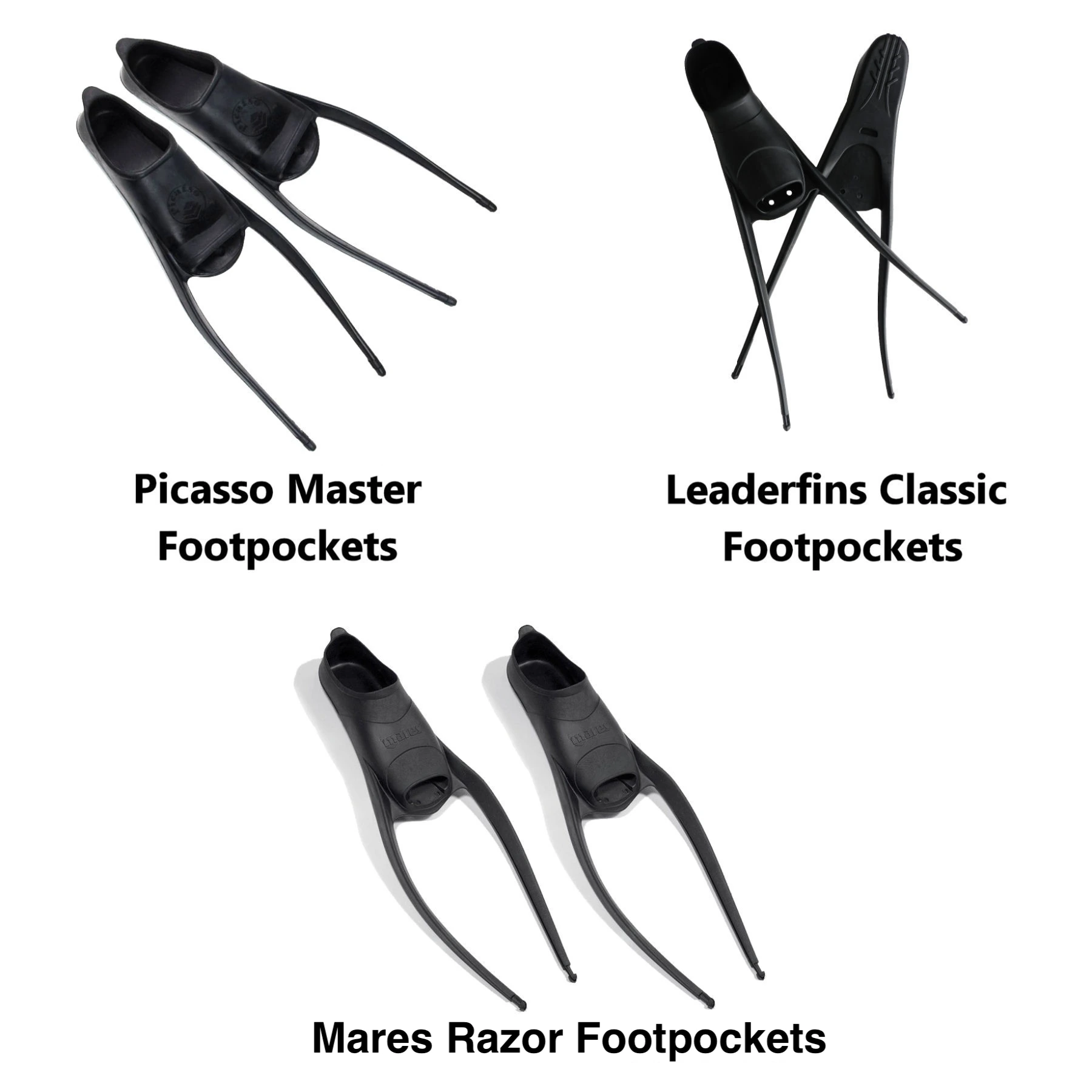 Están disponibles con bolsillos para pies Picasso, Mares o Leaderfins para un ajuste seguro y cómodo, y vienen con un riel de pala de longitud completa para un canalizado óptimo del agua. La protección opcional del borde de la pala de Kevlar asegura una durabilidad inigualable incluso en condiciones adversas.