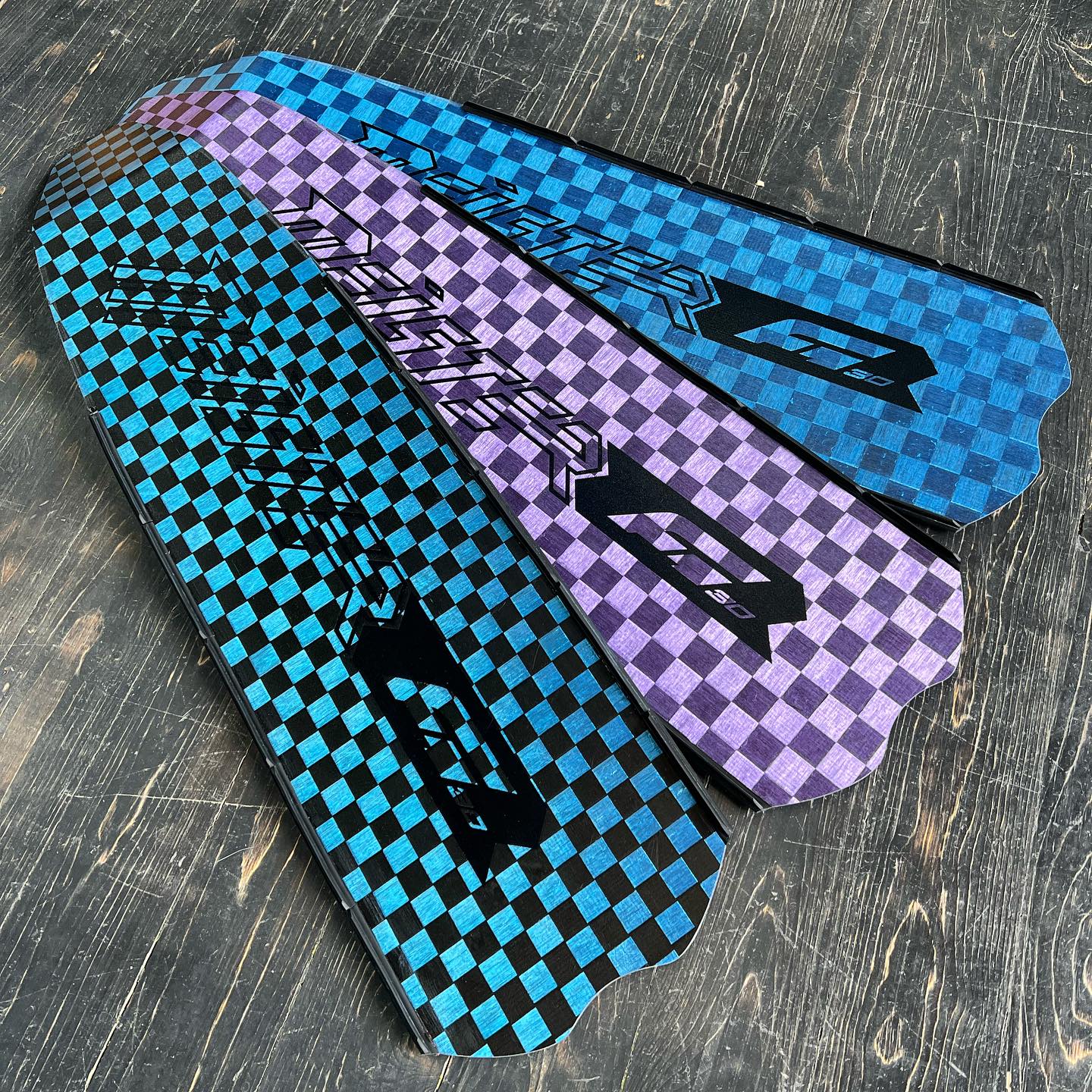 Estas aletas están construidas con hojas de fibra de carbono de alta calidad y presentan una superficie de carbono negro mate con el logotipo de la empresa en relieve.