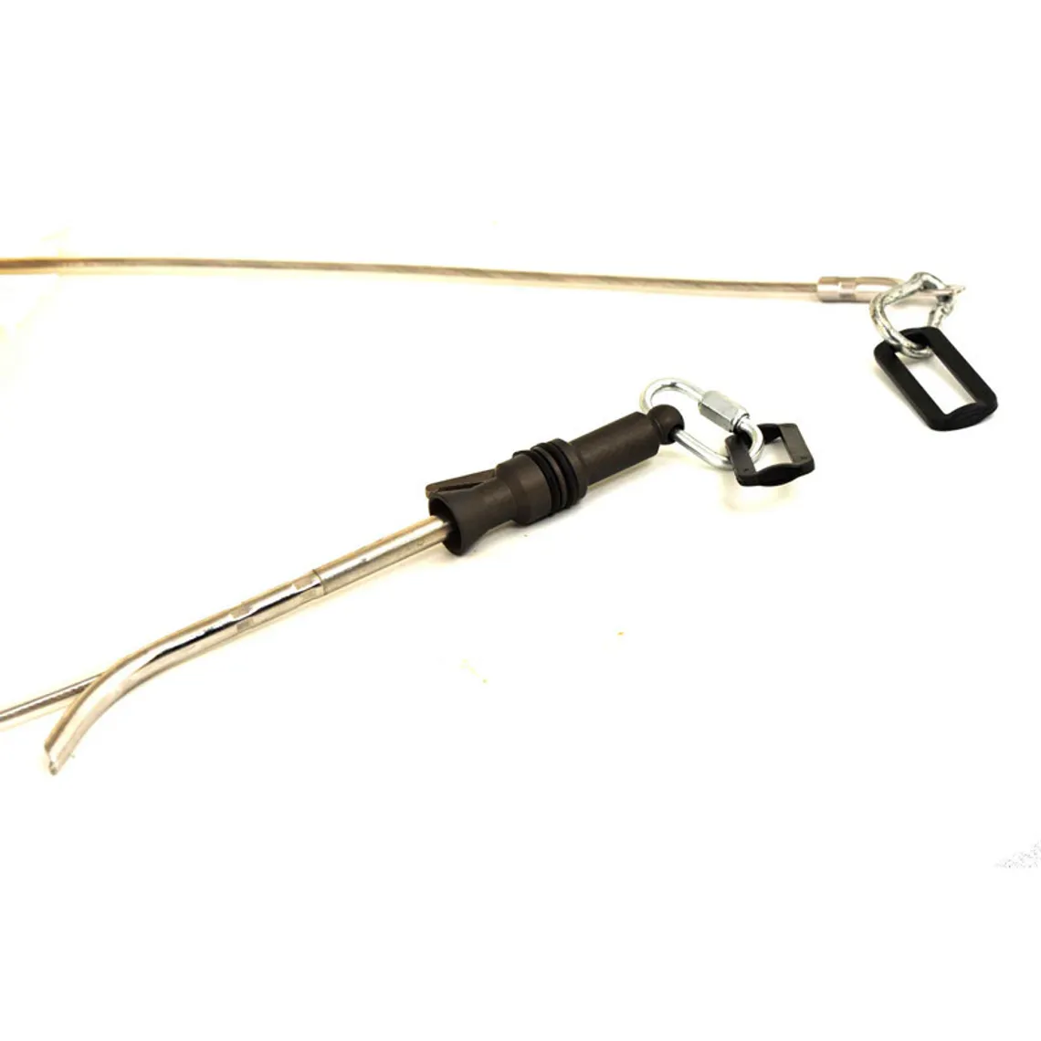 La aguja universal cuenta con una púa extendida, lo que le permite sujetar los peces de manera segura sin necesidad de un receptor de aguja. La línea principal es un cable de acero inoxidable de 3 a 6 mm, reforzado con un tubo de PVC. Este diseño previene enredos, torsiones o roturas accidentales, y el cordón es completamente reemplazable en el campo.