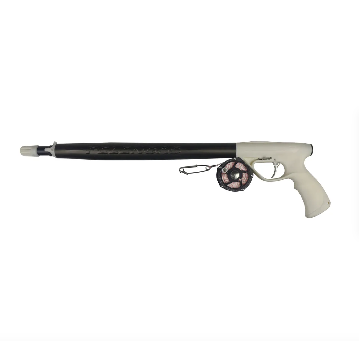 - Empuñadura de goma blanca para localizar fácilmente el fusil en un bote o en el fondo del mar