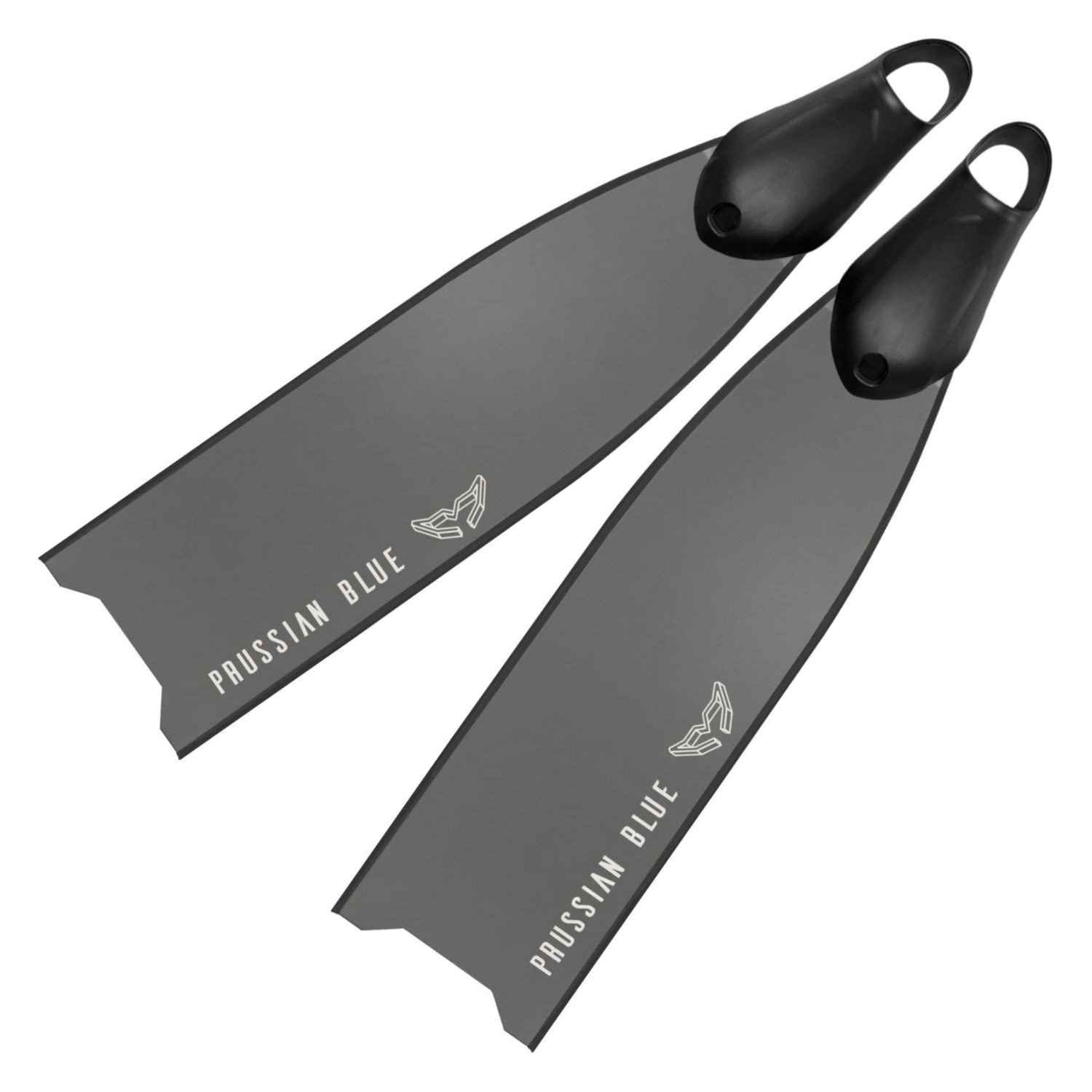 Las Aletas Prussian Blue Cement Gray son ideales para apnea y pesca submarina, fabricadas con palas artesanales de fibra de vidrio de grado aeroespacial y un ángulo de 26 grados que facilita una propulsión eficiente y sin esfuerzo.